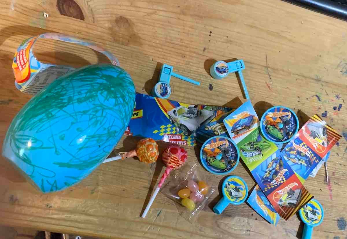 What was in the Hot Wheels Easter Eggs – lollipops, stickers, spinning tops, and noisemakers