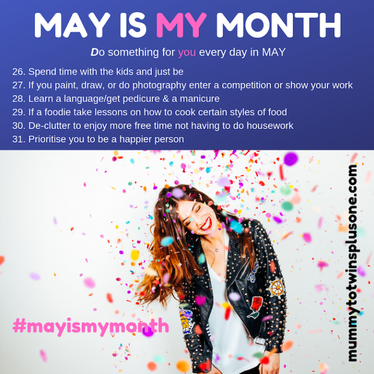 May is a HUGE month for my family, birthdays, wedding anniversary and Mother’s Day too! Busy mums get little time for them, so I thought that I would create May for mums – May Is My Month! Each day in May I urge you to do something just for you. No matter how small it is, do it for you. Share what you get up to on our Instagram and Facebook page.